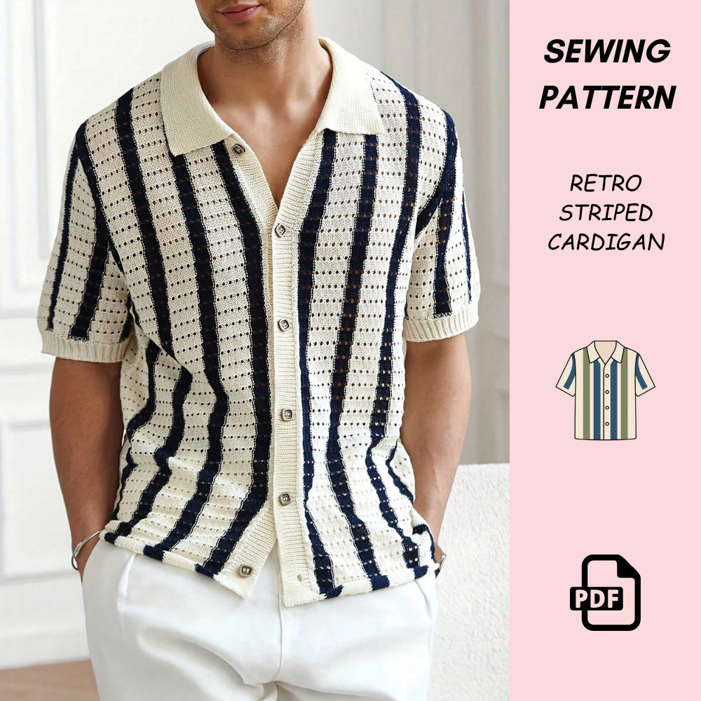 Men’s Crochet Top Pattern PDF, Crochet Button Down Shirt Pattern, DIY Striped Crochet Shirt, Beginner Friendly Men’s Crochet Pattern, Instant Download